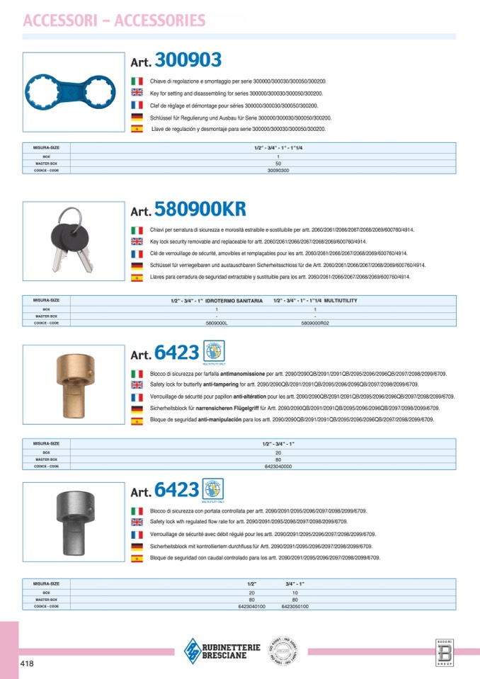 Verrouillage de sécurité pour papillon anti-altération pour les artt. 2090/2090QB/2091/2091QB/2095/2096/2096QB/2097/2098/2099/6709.
