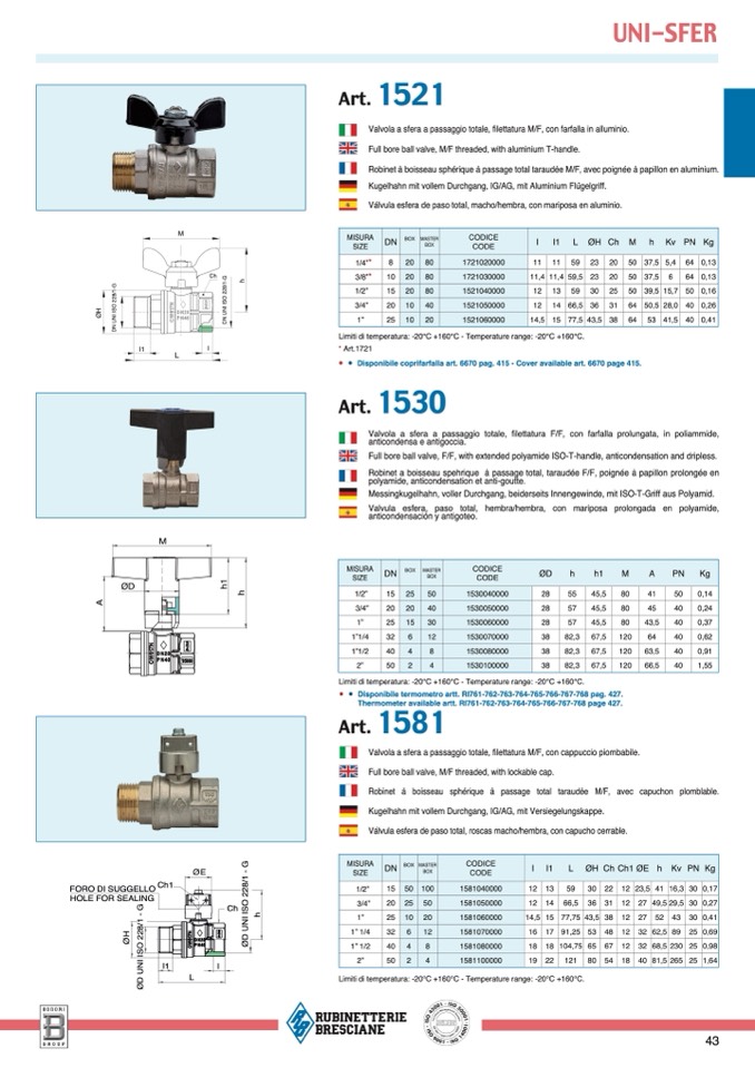Limiti di temperatura: -20°C +160°C - Temperature range: -20°C +160°C