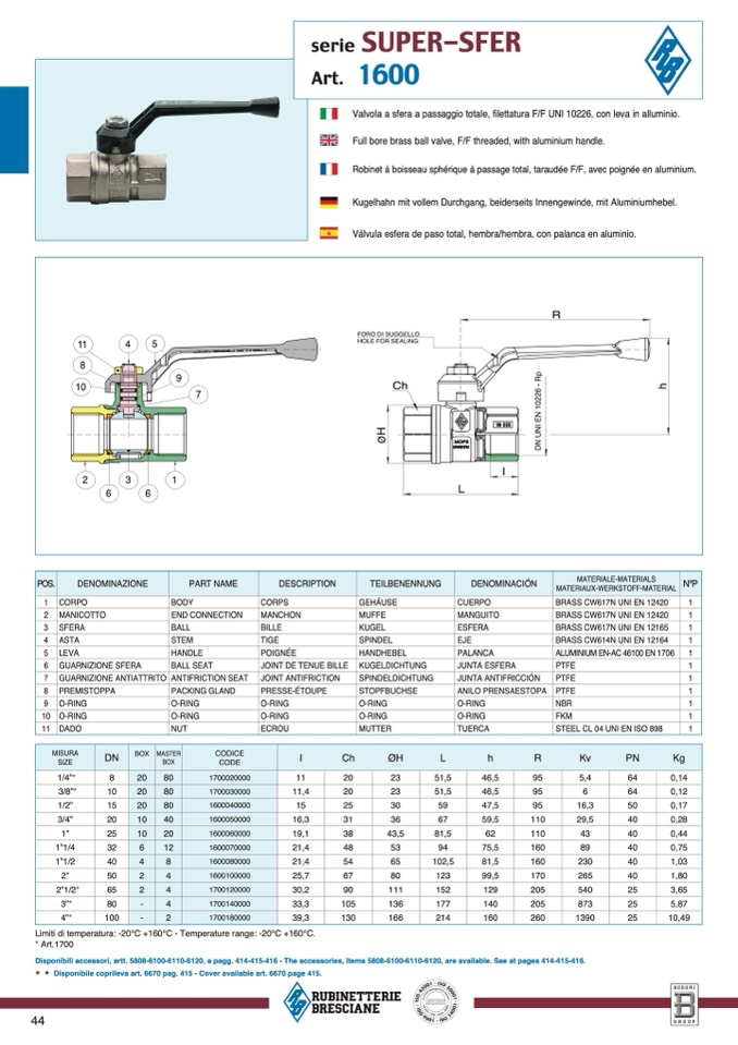 Limiti di temperatura: -20°C +160°C - Temperature range: -20°C +160°C