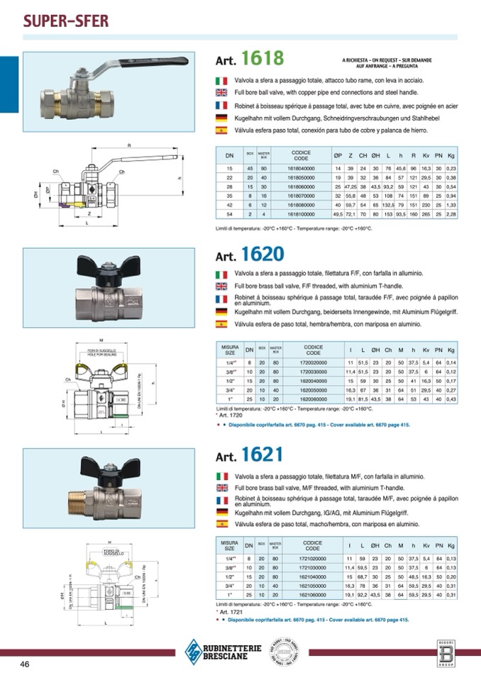 Limiti di temperatura: -20°C +160°C - Temperature range: -20°C +160°C