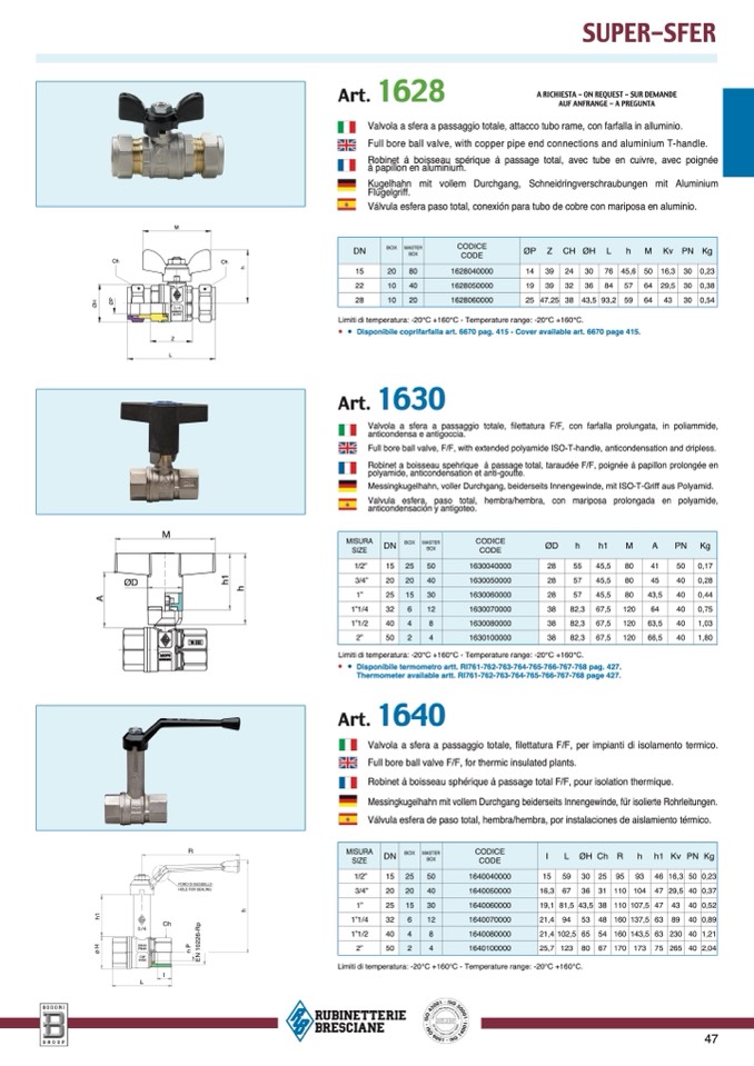 Limiti di temperatura: -20°C +160°C - Temperature range: -20°C +160°C