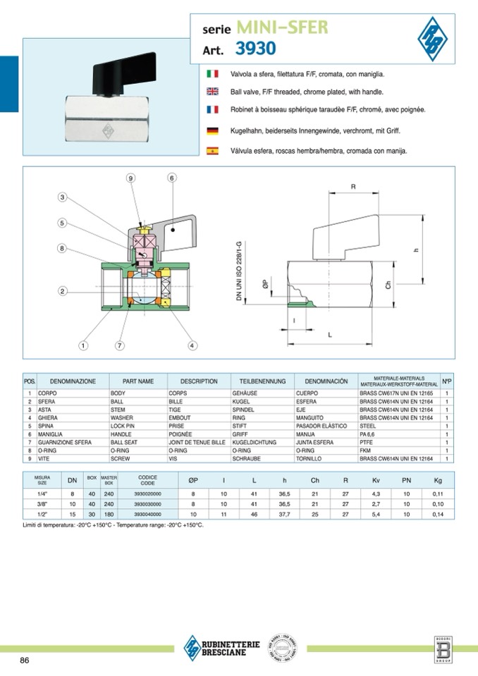 Limiti di temperatura: -20°C +150°C - Temperature range: -20°C +150°C