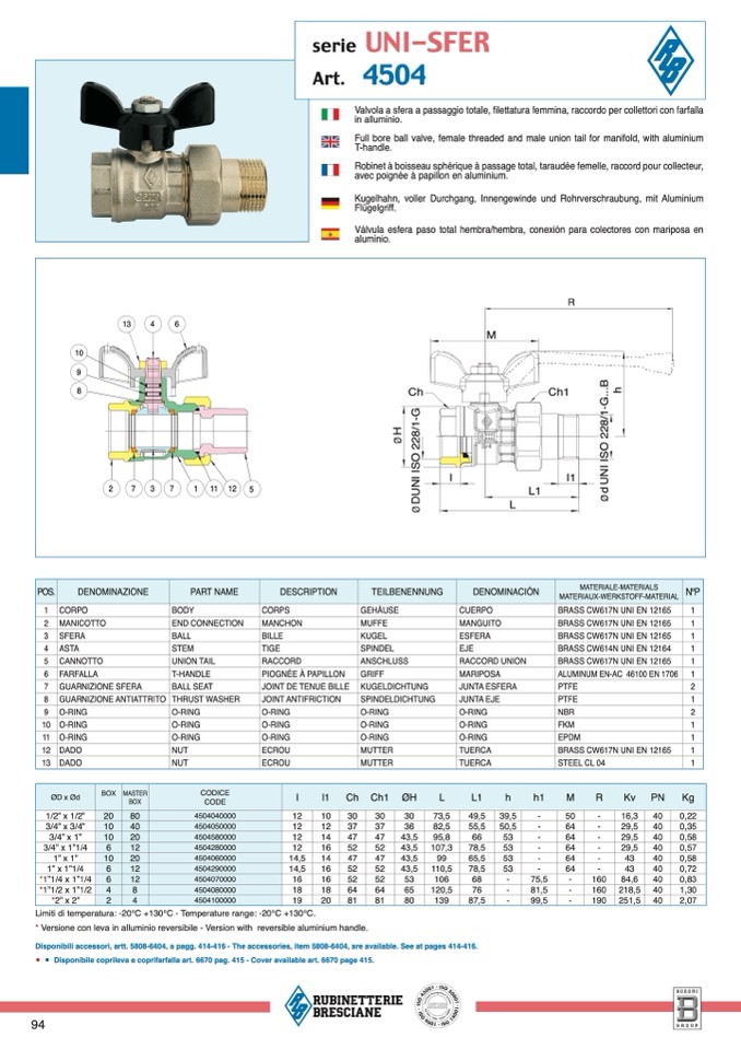 Limiti di temperatura: -20°C +130°C - Temperature range: -20°C +130°C
