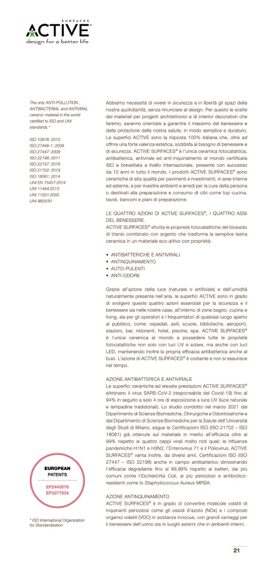 Le superfici ceramiche ad elevate prestazioni ACTIVE SURFACES