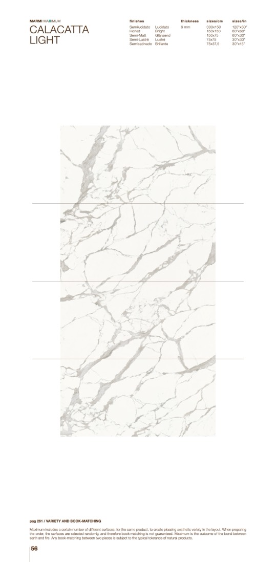 Maximum includes a certain number of different surfaces, for the same product, to create pleasing aesthetic variety in the layout. When preparing
