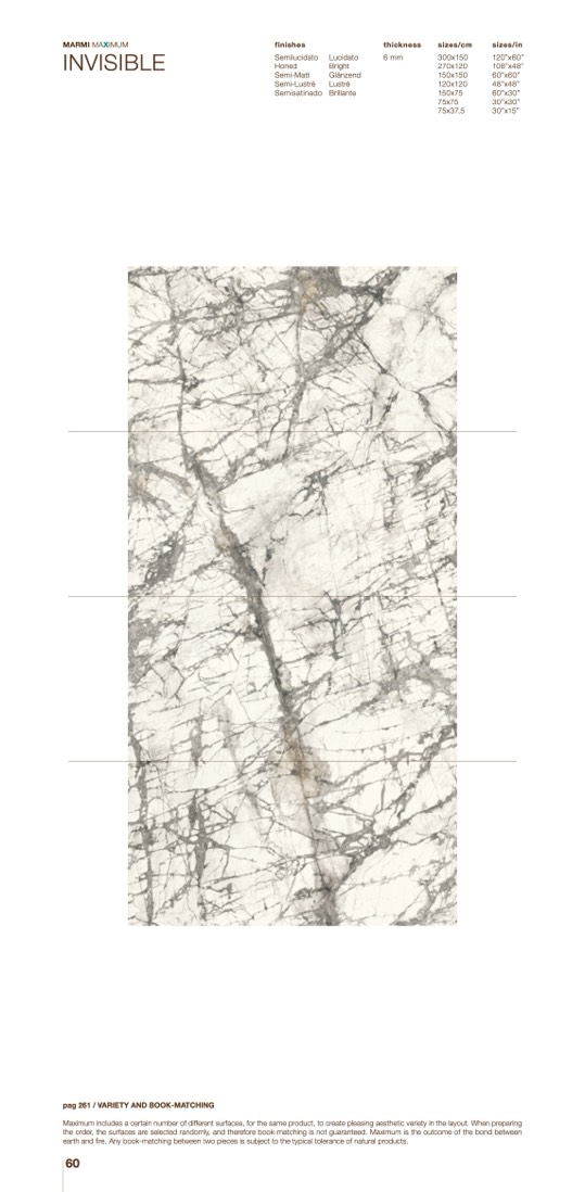 Maximum includes a certain number of different surfaces, for the same product, to create pleasing aesthetic variety in the layout. When preparing