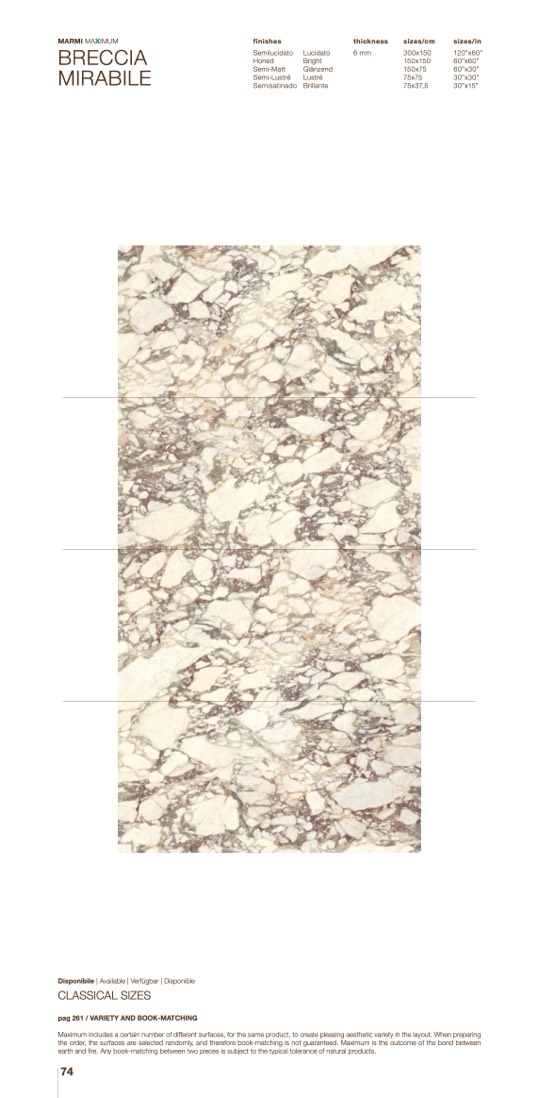 Maximum includes a certain number of different surfaces, for the same product, to create pleasing aesthetic variety in the layout. When preparing