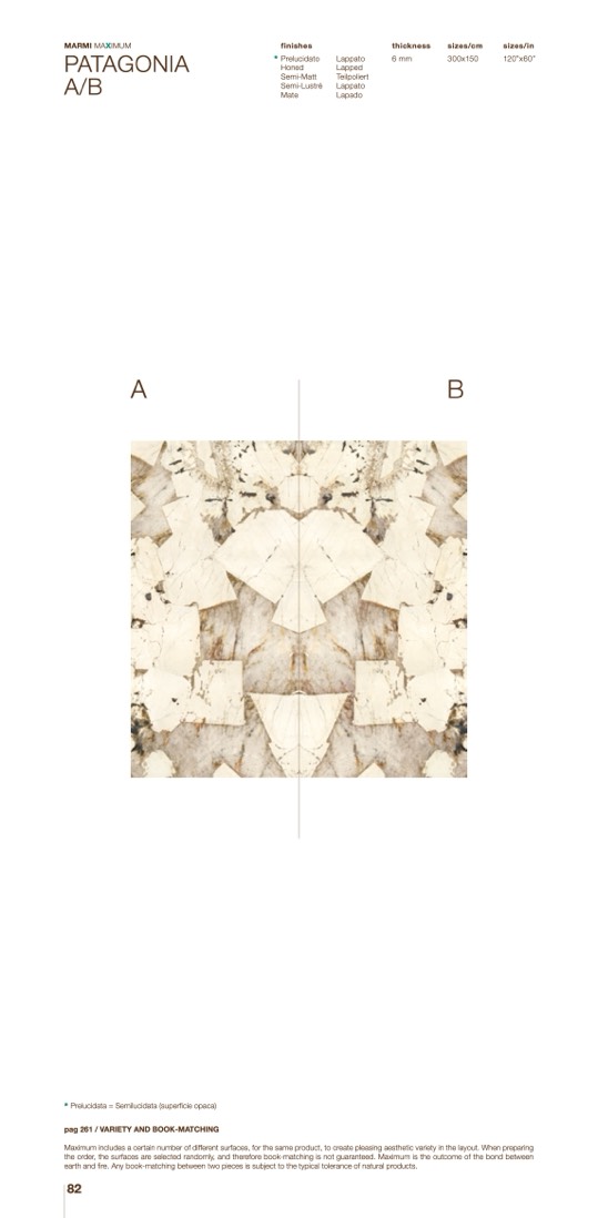 Maximum includes a certain number of different surfaces, for the same product, to create pleasing aesthetic variety in the layout. When preparing