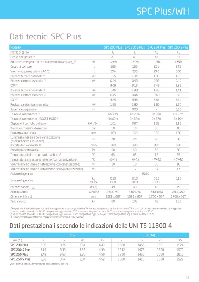 (1) Valori calcolati secondo EN 16147: temperatura ingresso aria = 7 °C, temperatura ingresso acqua = 10 °C, temperatura acqua calda sanitaria = 55 °C