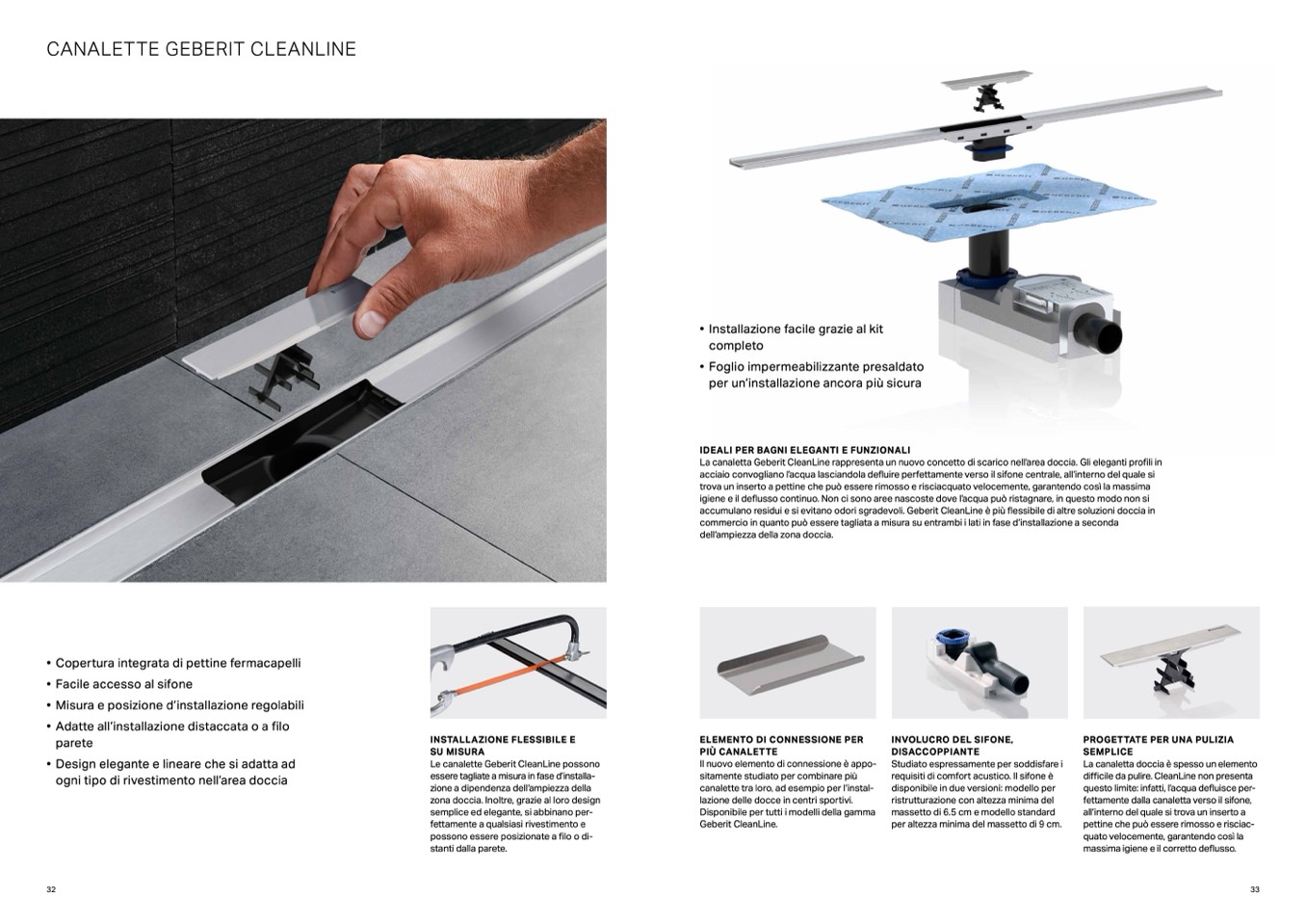 accumulano residui e si evitano odori sgradevoli. Geberit CleanLine è più flessibile di altre soluzioni doccia in