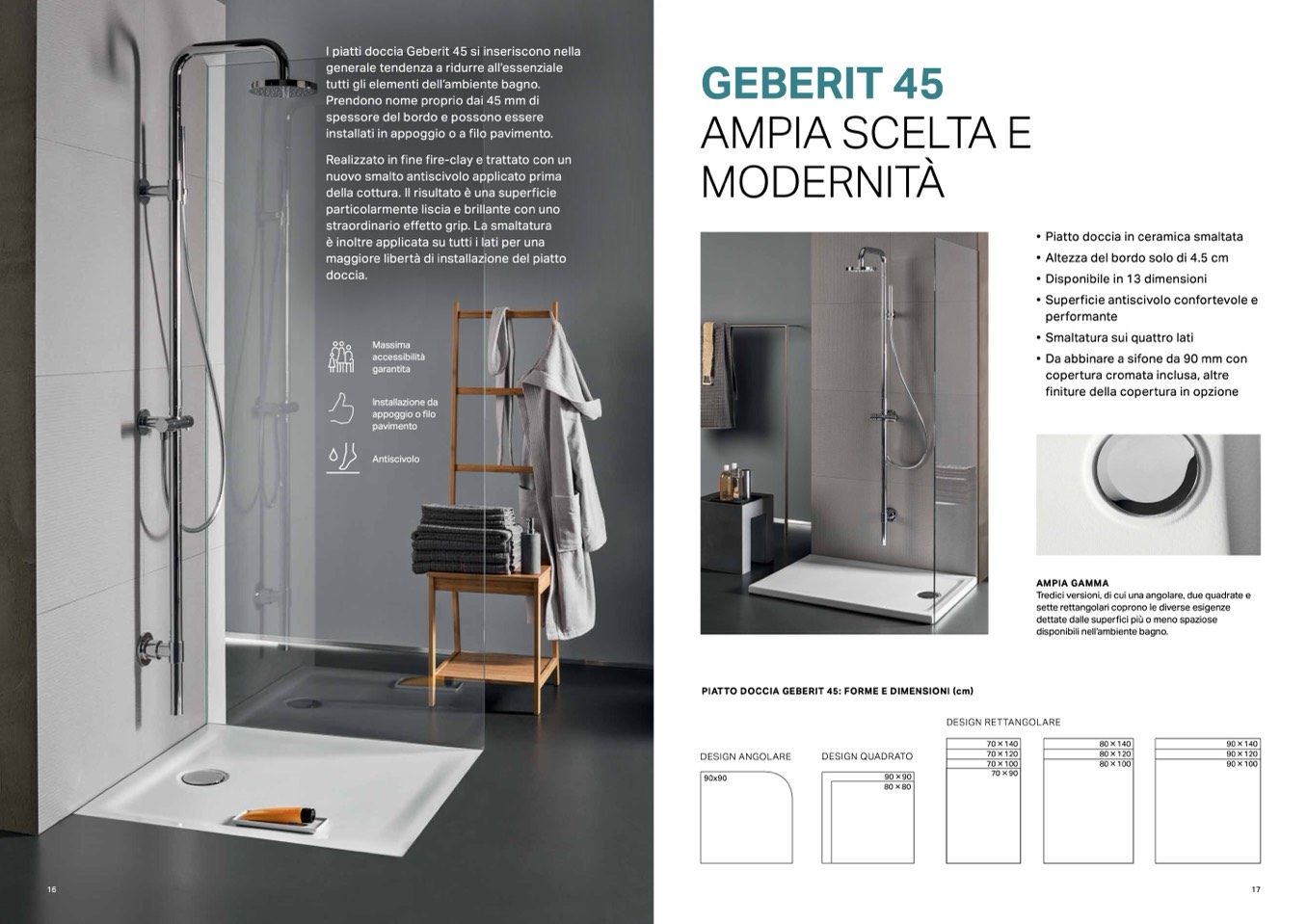 PIATTO DOCCIA GEBERIT 45: FORME E DIMENSIONI (cm)
