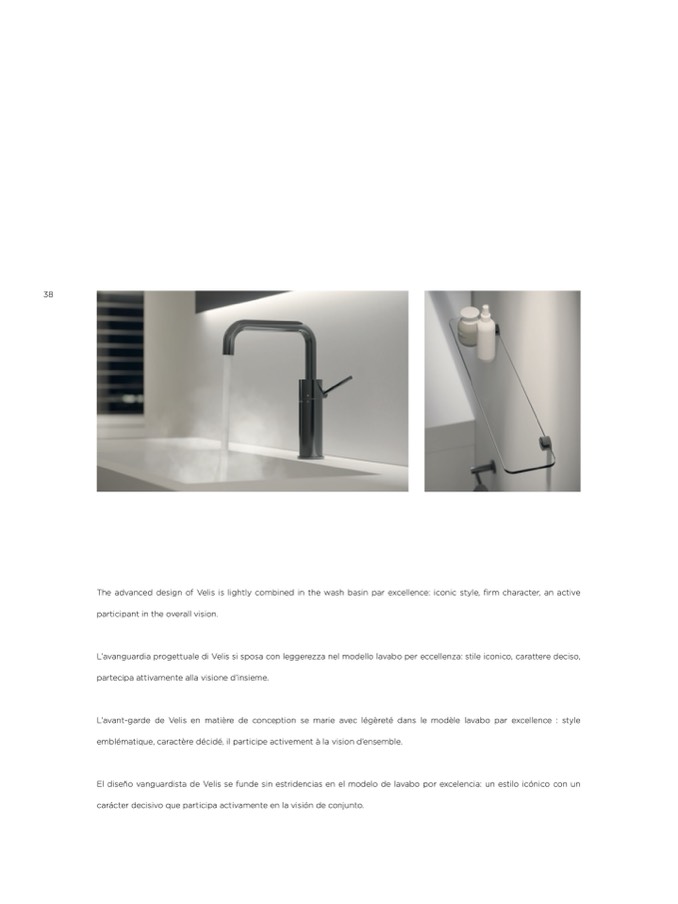 L’avanguardia progettuale di Velis si sposa con leggerezza nel modello lavabo per eccellenza: stile iconico, carattere deciso,