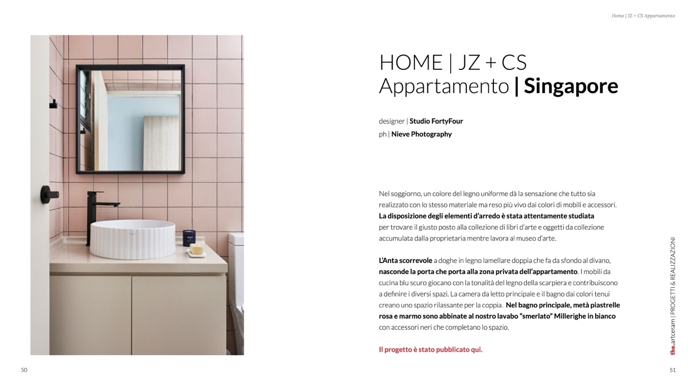 realizzato con lo stesso materiale ma reso più vivo dai colori di mobili e accessori.