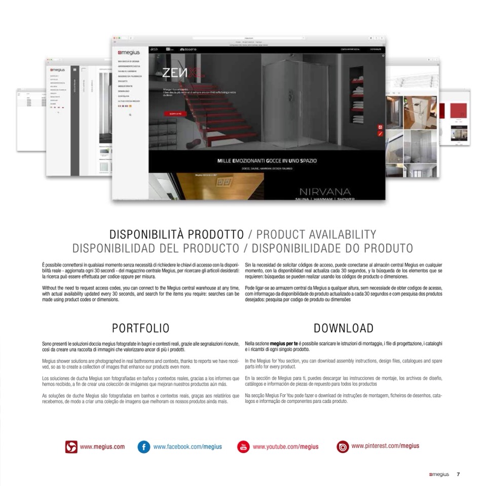 As soluções de duche Megius são fotografadas em banhos e contextos reais, graças aos relatórios que