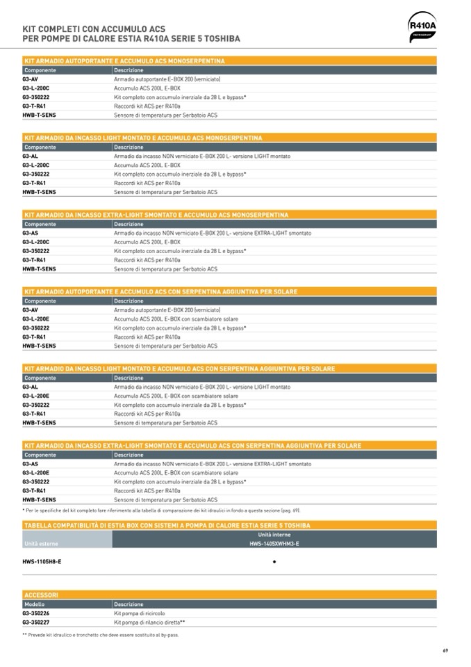 TABELLA COMPATIBILITÀ DI ESTIA BOX CON SISTEMI A POMPA DI CALORE ESTIA SERIE 5 TOSHIBA