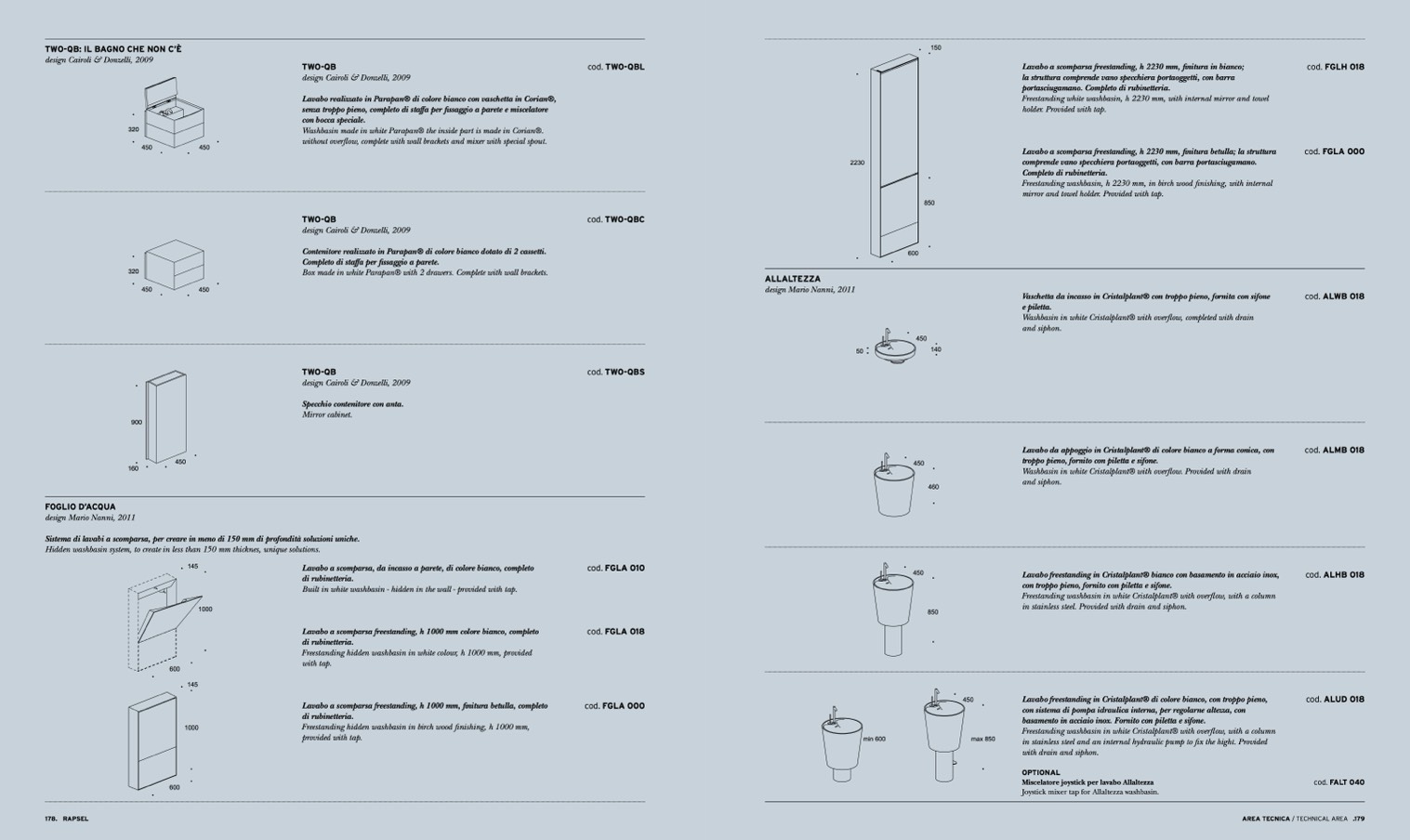 Sistema di lavabi a scomparsa, per creare in meno di 150 mm di profondità soluzioni uniche.