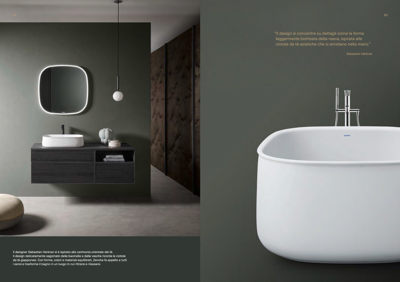Il design delicatamente sagomato delle bacinelle e delle vasche ricorda le ciotol