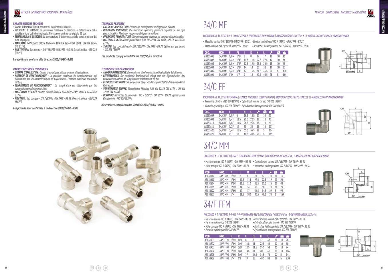 RACCORDO A L FILETTATO M-F | MALE-FEMALE THREADED ELBOW FITTING | RACCORD COUDE FILETE M-F | L-ANSCHLUSS MIT AUSSEN-/INNENGEWINDE