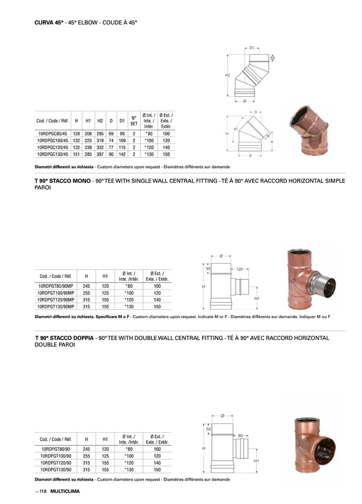 T 90° STACCO DOPPIA - 90° TEE WITH DOUBLE WALL CENTRAL FITTING - T