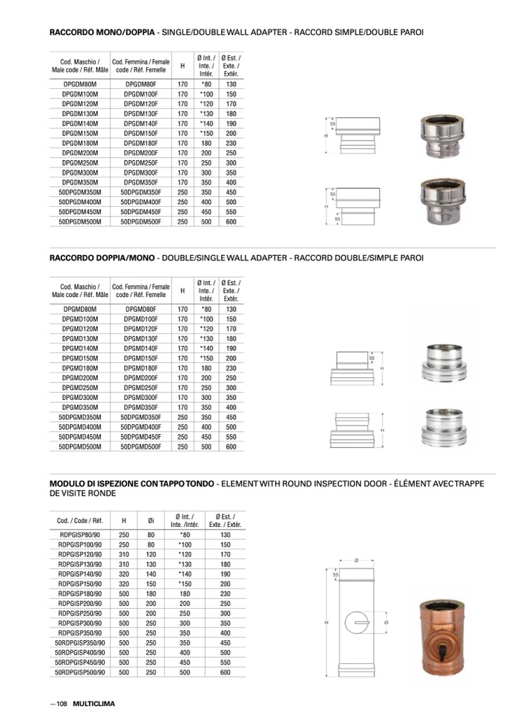 RACCORDO MONO/DOPPIA - SINGLE/DOUBLE WALL ADAPTER - RACCORD SIMPLE/DOUBLE PAROI