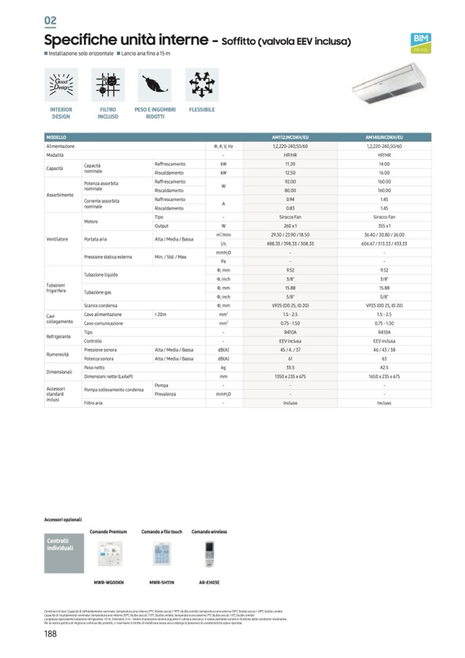 Lunghezza equivalente tubazione refrigerante: 7.5 m; Dislivello: 0 m - Valore di pressione sonora acquisito in camera anecoica. Il valore potrebbe variare in funzione delle condizioni installative.