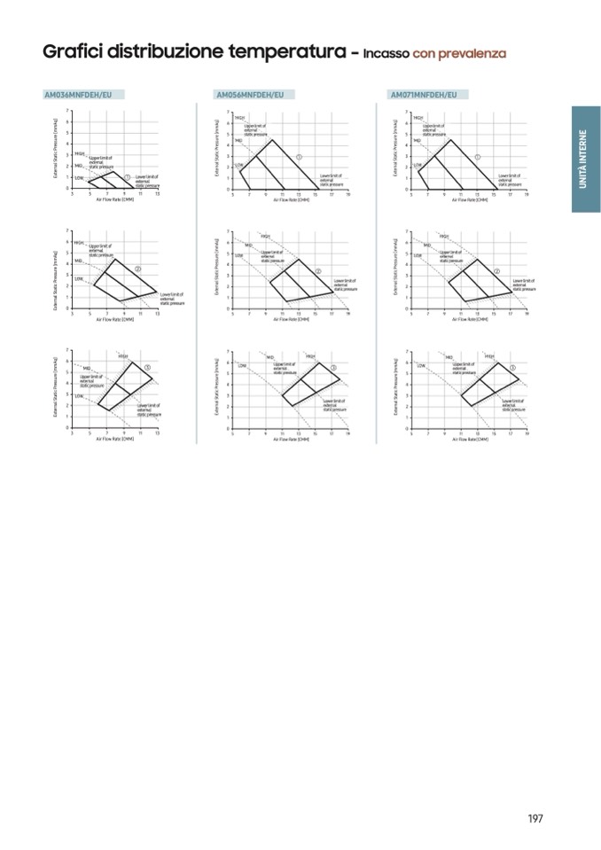 • The graphs display the available external static pressure range of installed indoor units. Therefore, they do