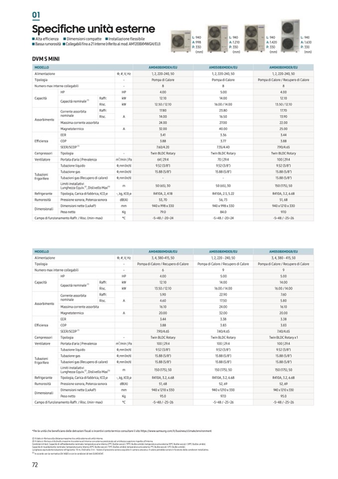 *Per le unità che beneficiano delle detrazioni fiscali o incentivi conto termico consultare il sito https://www.samsung.com/it/business/climate/environment