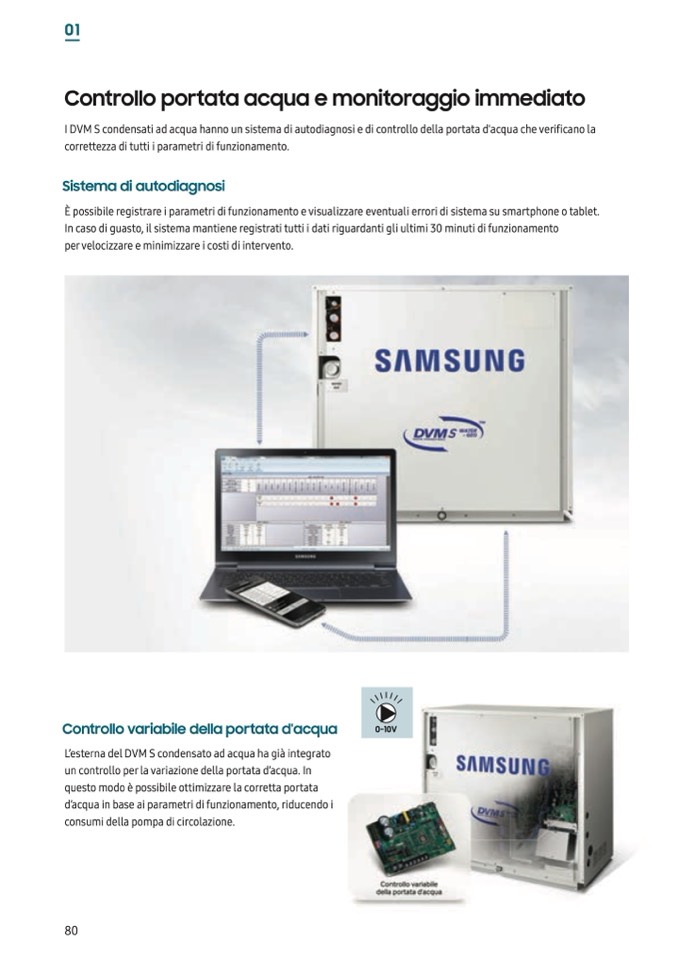 I DVM S condensati ad acqua hanno un sistema di autodiagnosi e di controllo della portata d'acqua che verificano la