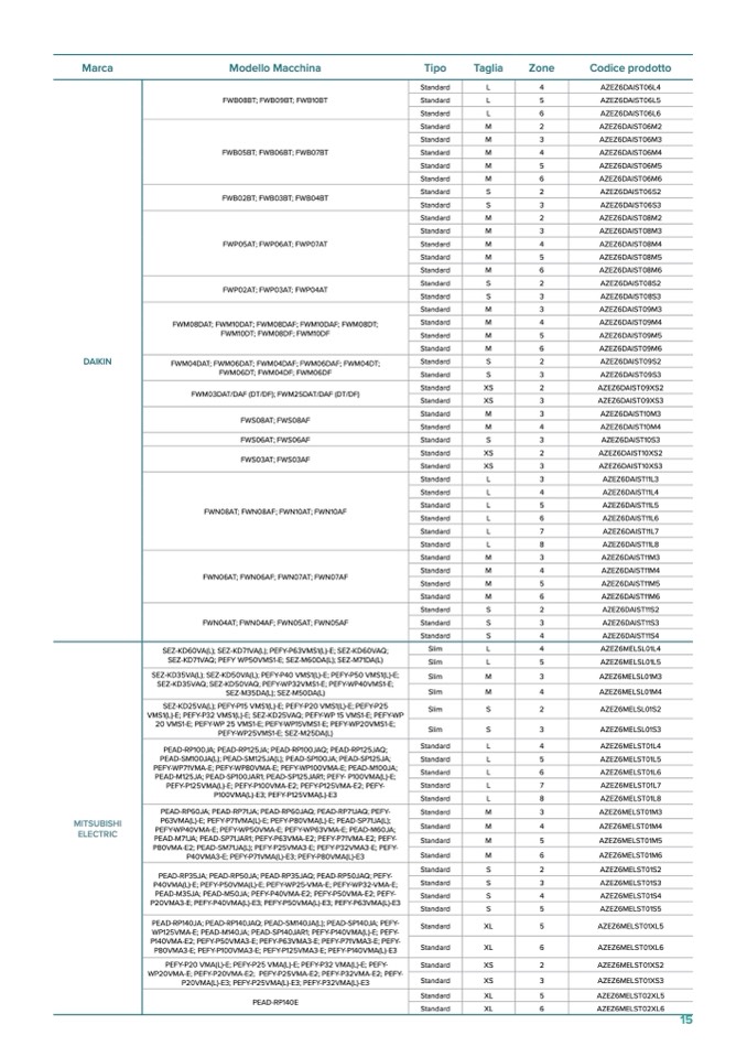 VMS1(L)-E; PEFY-P32 VMS1(L)-E; SEZ-KD25VAQ; PEFY-WP 15 VMS1-E; PEFY-WP