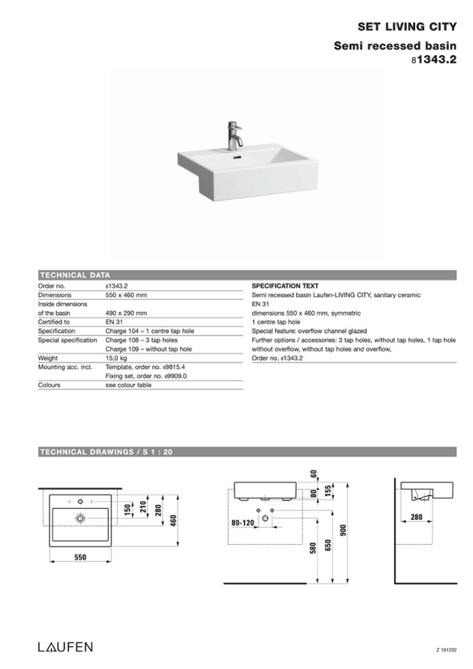 Semi recessed basin Laufen-LIVING CITY, sanitary ceramic