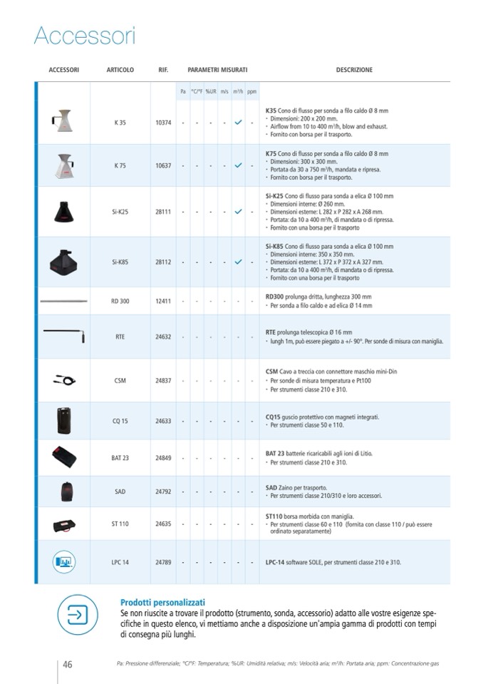 ∙ Per strumenti classe 60 e 110 (fornita con classe 110 / pu