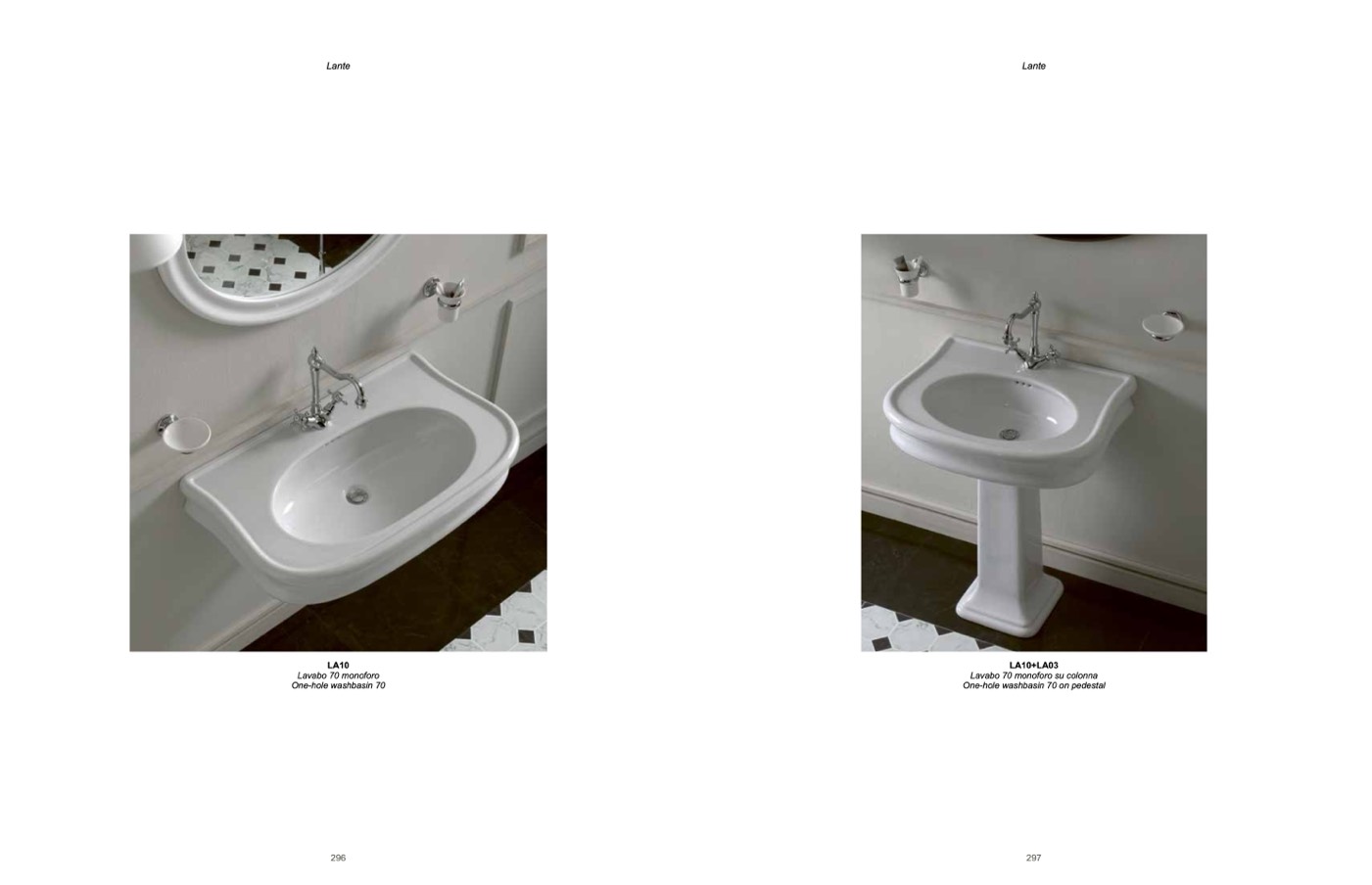 One-hole washbasin 70 on pedestal