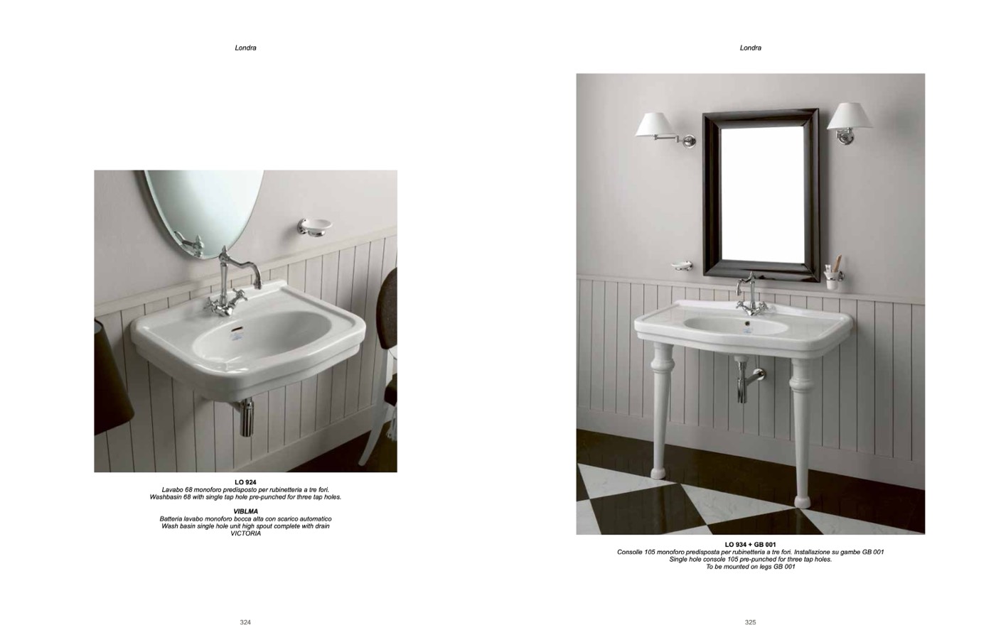 Consolle 105 monoforo predisposta per rubinetteria a tre fori. Installazione su gambe GB 001