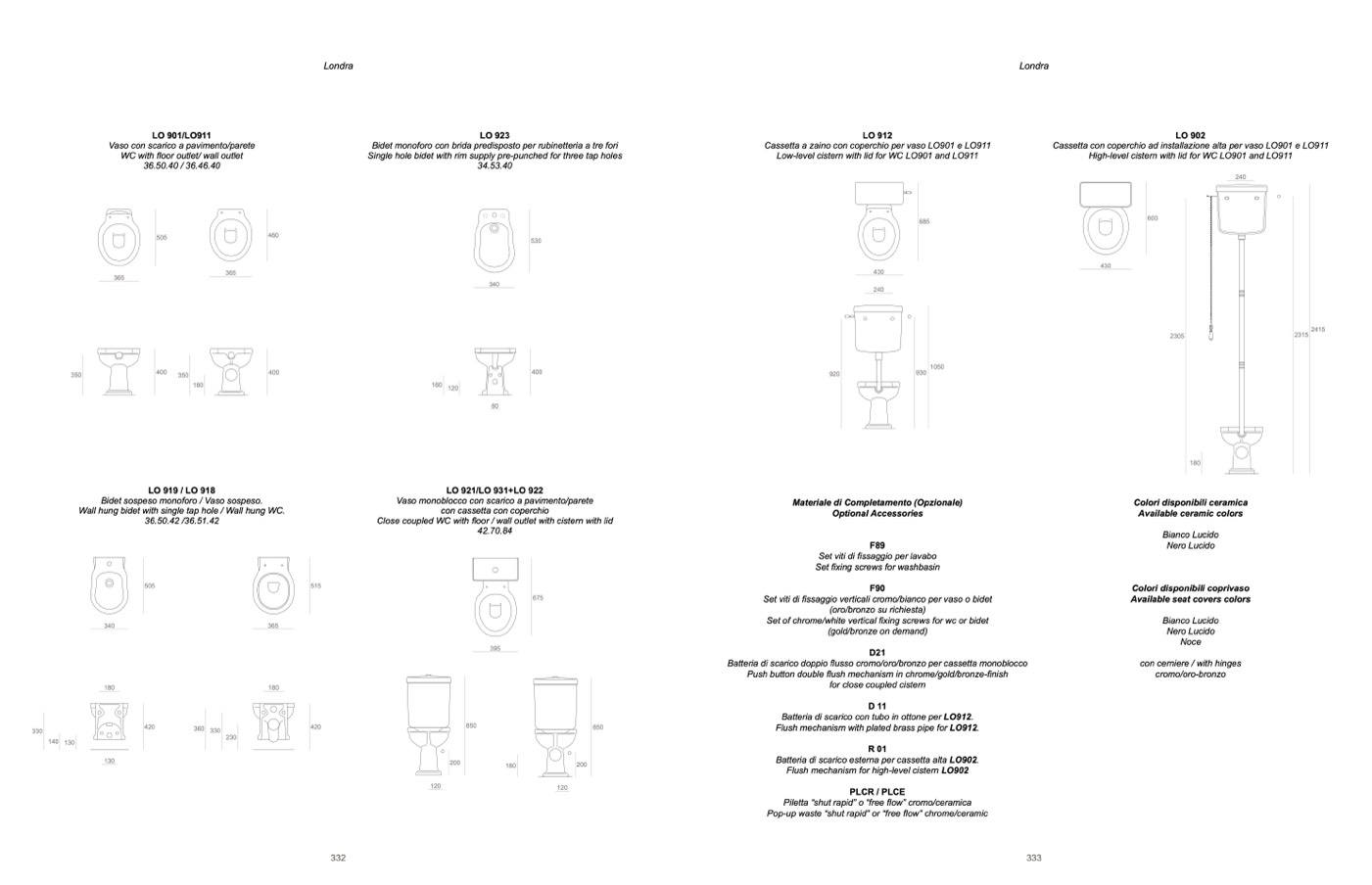 Batteria di scarico doppio flusso cromo/oro/bronzo per cassetta monoblocco