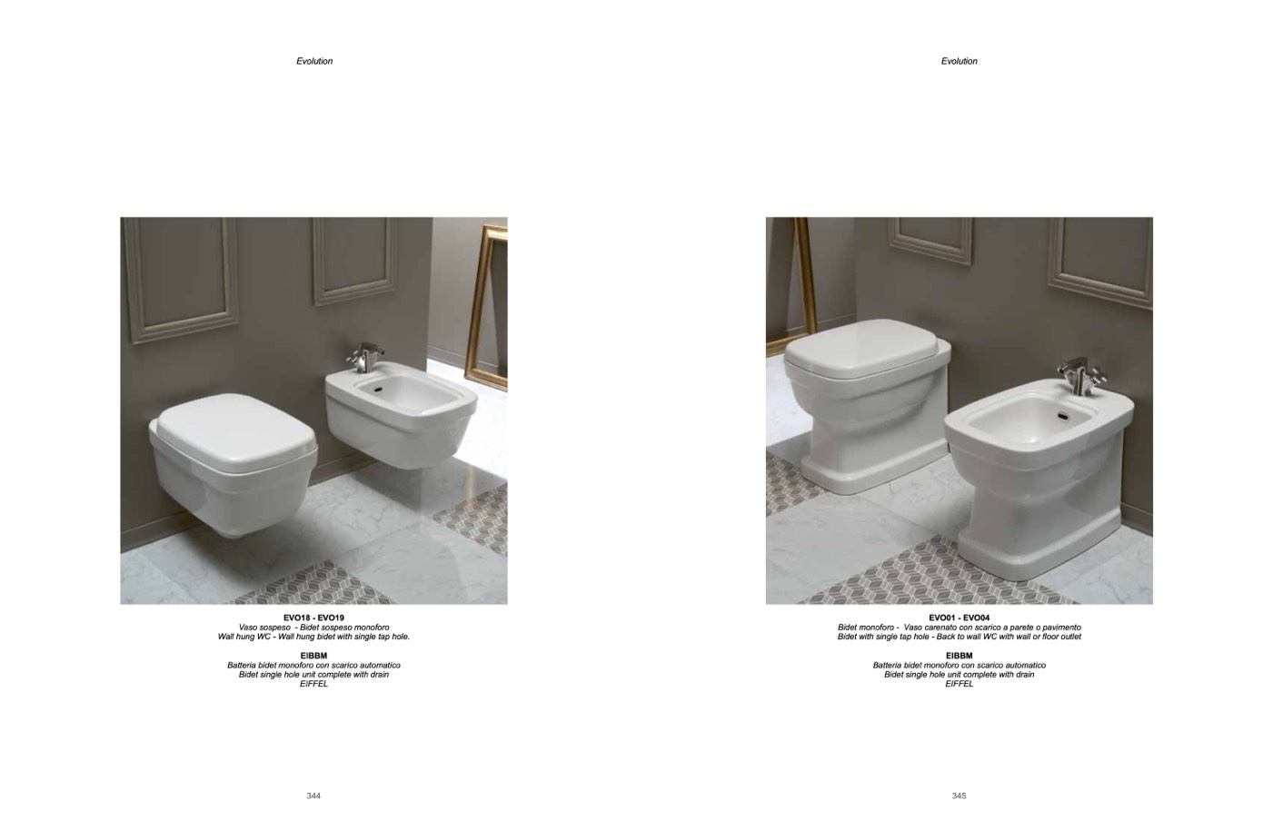 Bidet monoforo - Vaso carenato con scarico a parete o pavimento