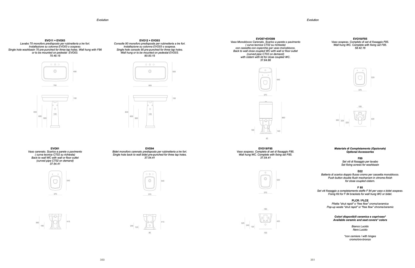 Single hole washbasin 70 pre-punched for three tap holes. Wall hung with F86