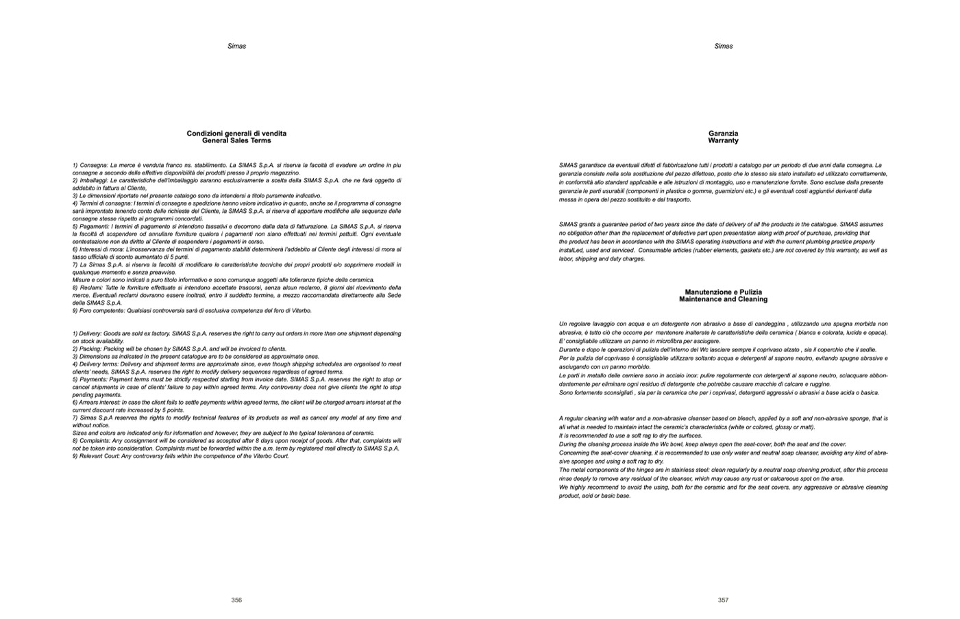 SIMAS garantisce da eventuali difetti di fabbricazione tutti i prodotti a catalogo per un periodo di due anni dalla consegna. La