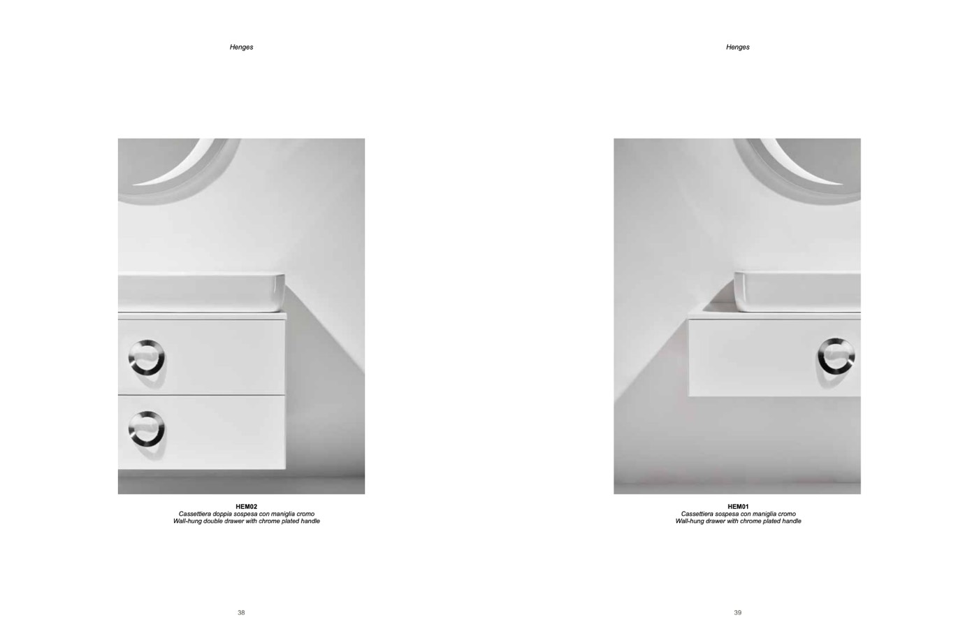 Wall-hung double drawer with chrome plated handle