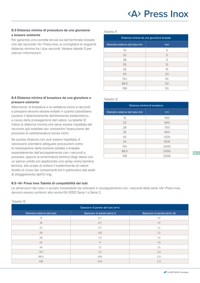 che del raccordo <A> Press Inox, si consigliano le seguenti