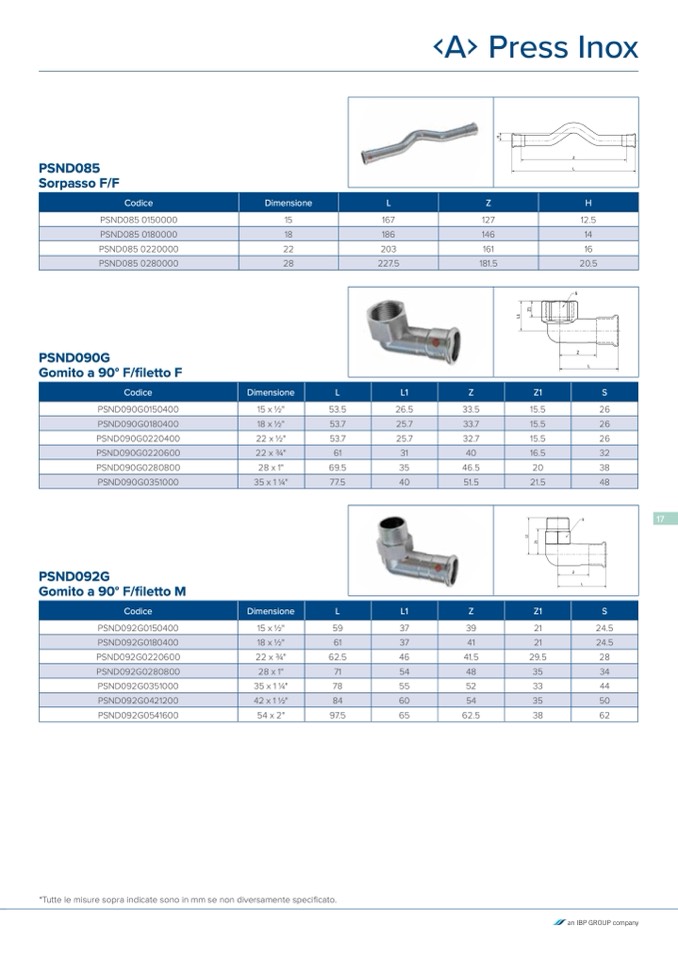 *Tutte le misure sopra indicate sono in mm se non diversamente specificato.