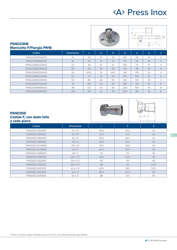 *Tutte le misure sopra indicate sono in mm se non diversamente specificato.