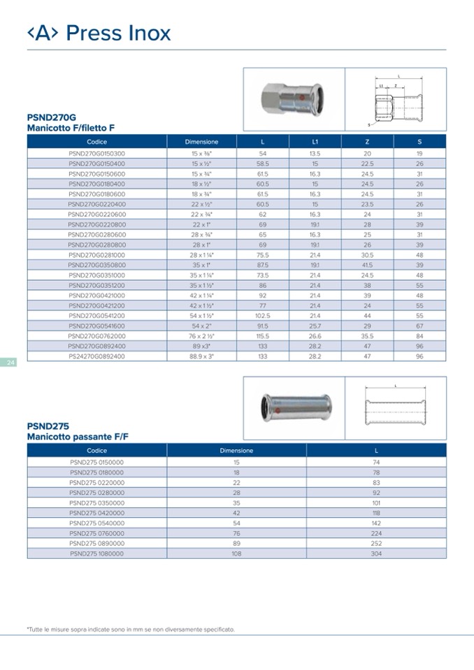 *Tutte le misure sopra indicate sono in mm se non diversamente specificato.