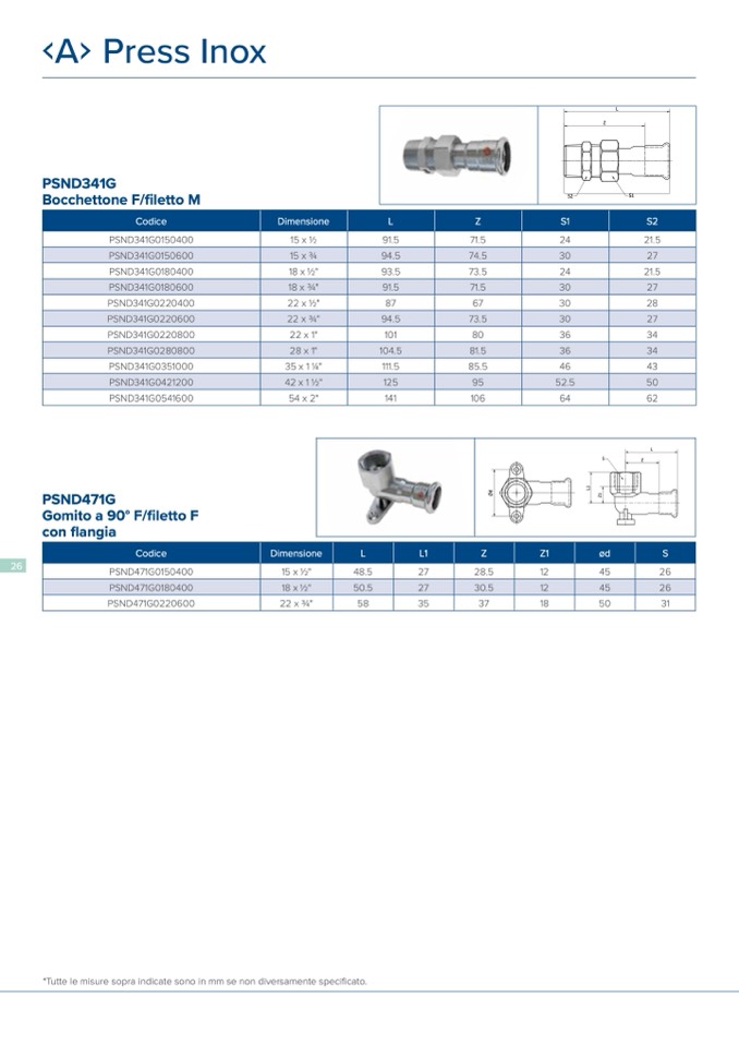 *Tutte le misure sopra indicate sono in mm se non diversamente specificato.