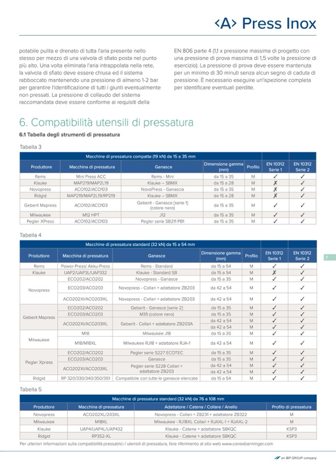 à pressatrici / utensili di pressatura, fare riferimento al sito web www.conexbanninger.com