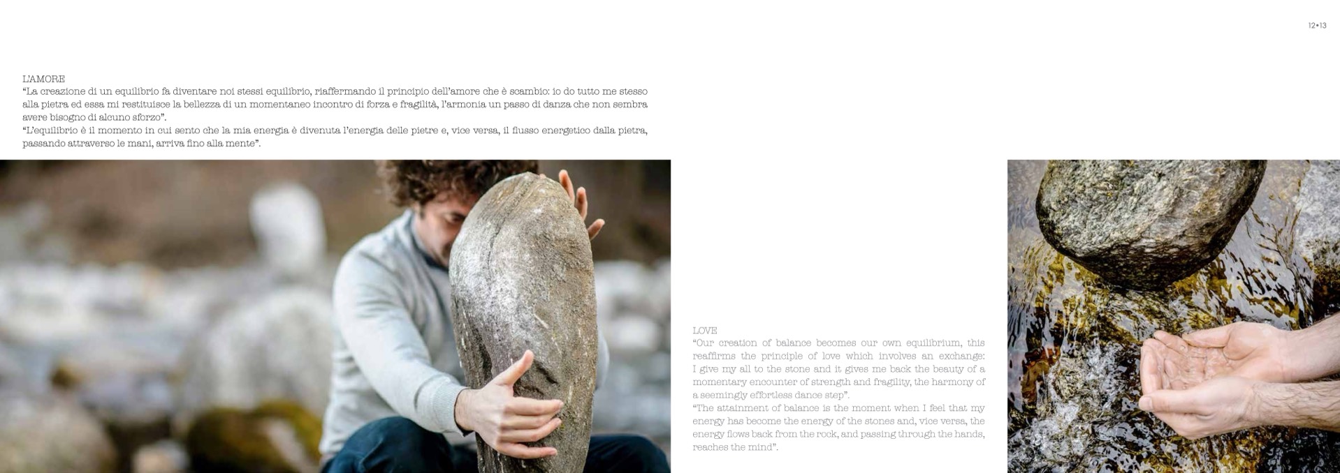 “L’equilibrio è il momento in cui sento che la mia energia è divenuta l’energia delle pietre e, vice versa, il flusso energetico dalla pietra,