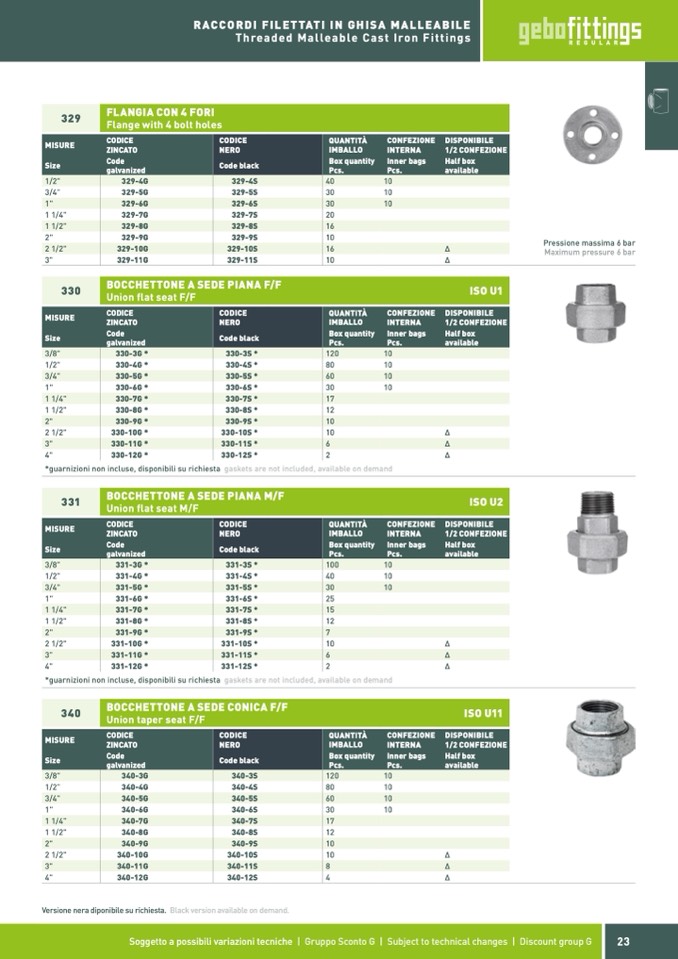 *guarnizioni non incluse, disponibili su richiesta gaskets are not included, available on demand