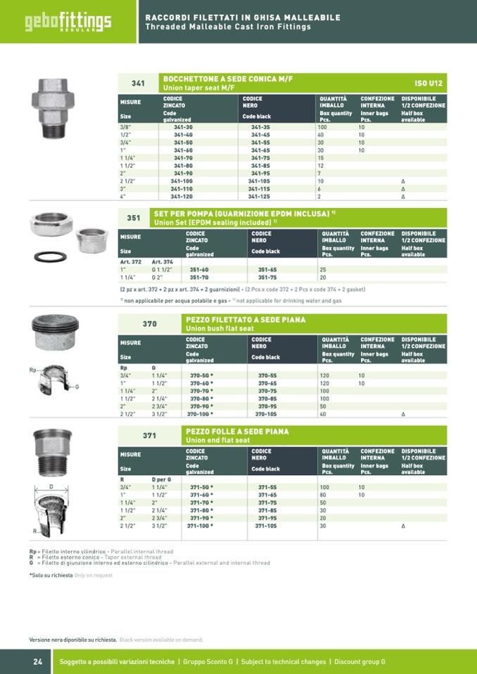 G = Filetto di giunzione interno ed esterno cilindrico - Parallel external and internal thread