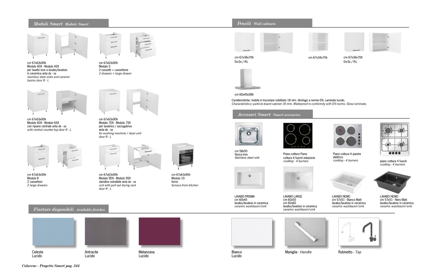 Characteristics: particle board cabinet 18 mm. Waterproof in conformity with EN norms. Gloss laminate.