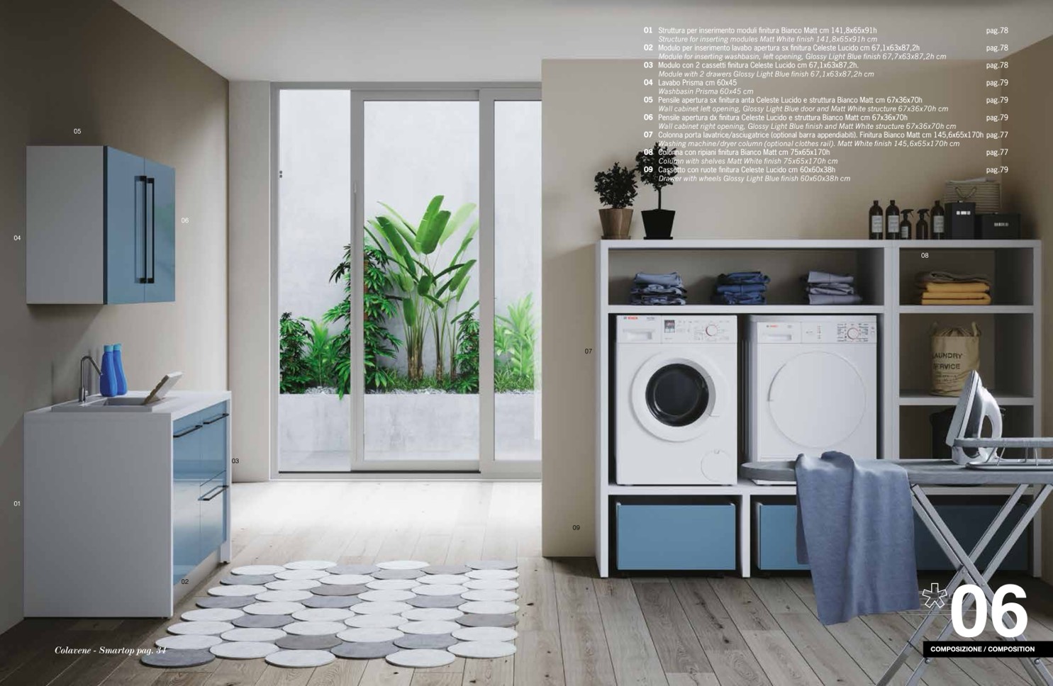 02 Modulo per inserimento lavabo apertura sx finitura Celeste Lucido cm 67,1x63x87,2h