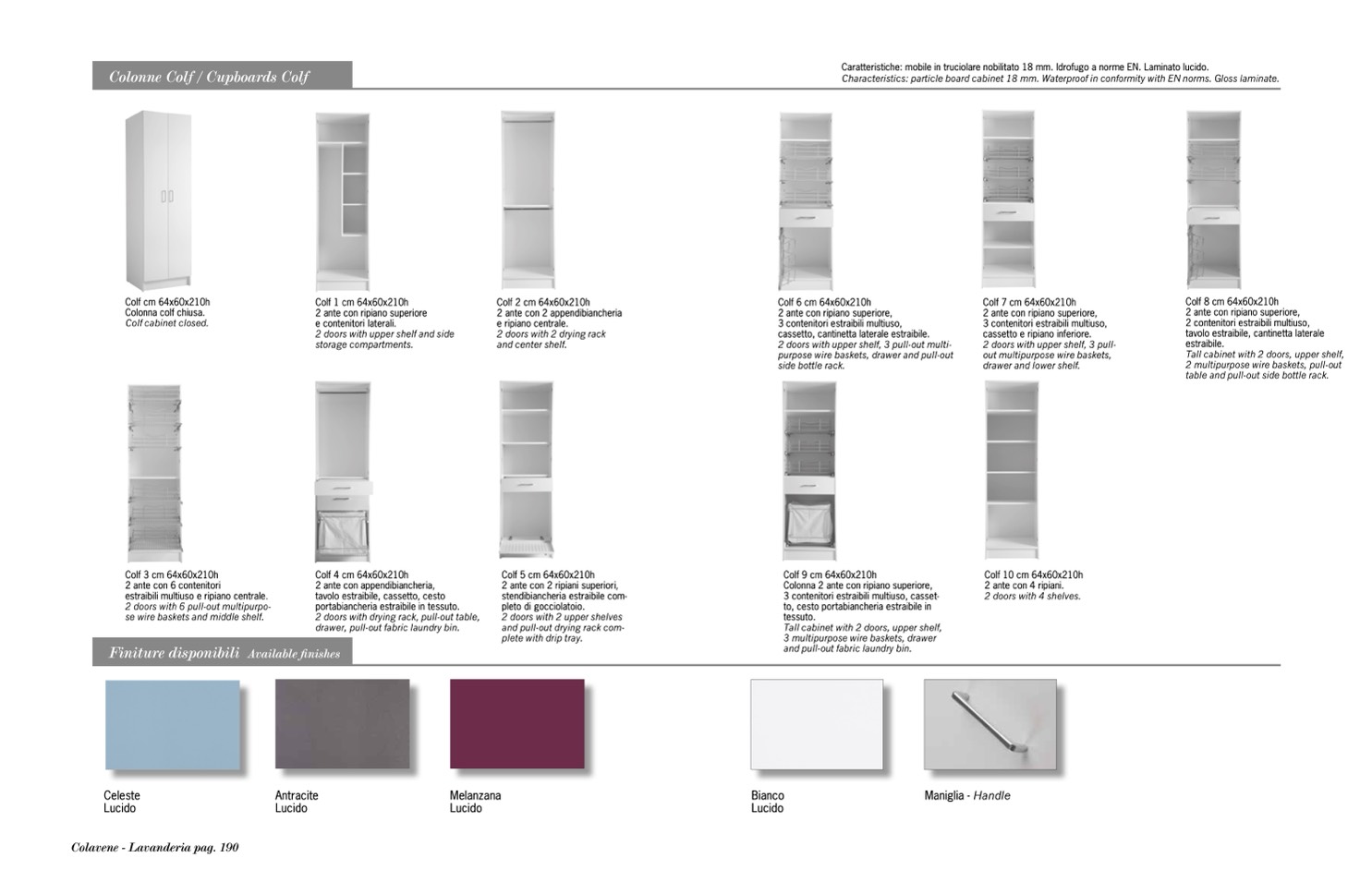Characteristics: particle board cabinet 18 mm. Waterproof in conformity with EN norms. Gloss laminate.